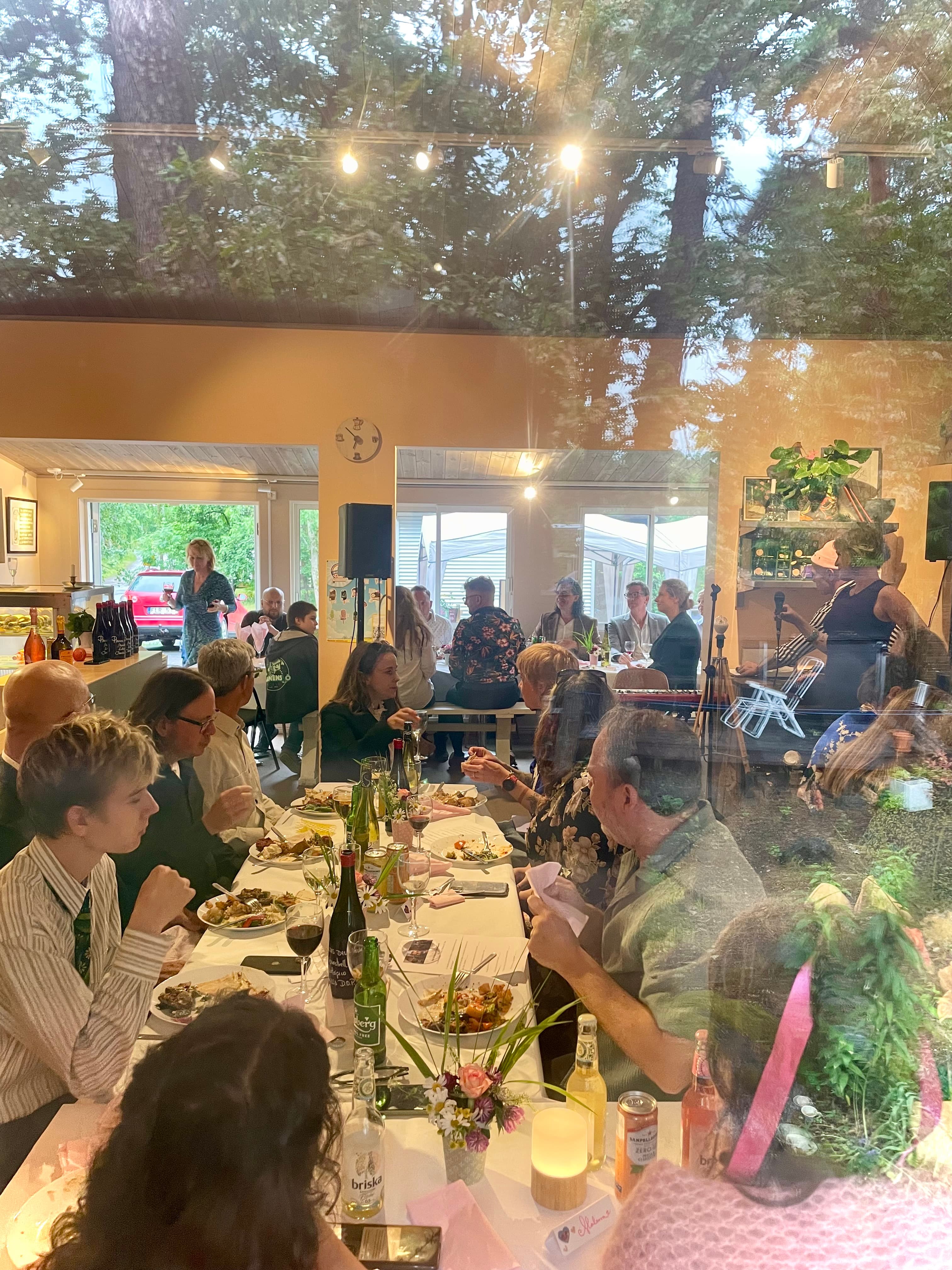 När vi inte har kaféet öppet erbjuder vi möjligheten att abonnera för kalas, AW, möten och andra tillställningar. Vanligtvis betyder det kl 17:15-22:15 (fyrbenta vänner också), men vissa vardagar kan det också funka på dagtid inkl. frukost, lunch och/eller eftermiddagsfika. Skicka en bokningsförfrågan, så kollar vi på det och återkommer! Vi har plats inomhus för ca 40 pers sittande och utomhus för ca 80 pers.
